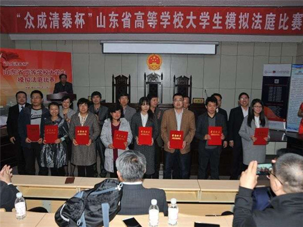 11月7日至8日,“众成清泰杯”山东省高等学校大学生模拟法庭比赛在青岛大学举办。文法系代表学院组队参加比赛,荣获团体二等奖。法学14-1班学生董梦缘被评为“优秀诉讼代理人”。