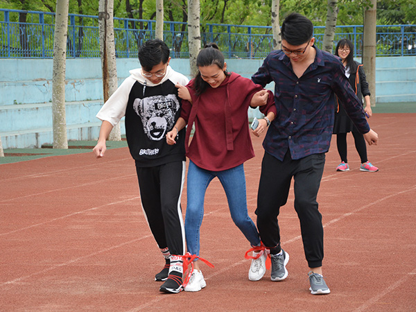 大会在精彩的双节棍表演中拉开帷幕,现场气氛活跃。参赛选手在比赛前一天进行组队抽签,并通过一天时间相互了解,增加默契程度。活动分为三环节,第一环节“铁人三项”包括三人四足、踢毽子和夹气球跑三个项目,考验队员间的默契和配合程度。第二环节“才艺大比拼”,各队选择唱歌、跳舞或者朗诵展示自己的才艺,由评委们进行打分,分数最高的五支队伍进入第三环节——“心有灵犀一点通”。第三环节中,先前的队伍组合被拆散,男生女生各自抽取幸运号码组成临时搭档,由一名选手通过肢体表演相应词语,另一名选手进行猜词,考验选手间的表达和理解能力。此外,在活动间隙,评委们将手中的球抛出,抢到者即可获得精心准备的小礼品,部分同学可谓是满载而归。最终,经过激励的角逐,一组获得本次大会的冠军。