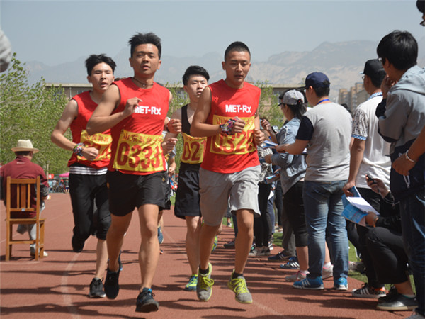 乐跑协会的会员身穿MET-RX乐跑战袍,在万众瞩目的赛道上尽情地挥洒青春的汗水、享受运动的乐趣,努力追逐心中的梦想。经过顽强拼搏,最终王长庆以11分29秒的成绩获男子乙组3000米夺冠,并在乙组男子5000米中获得第一名。于倩倩以12分10秒的成绩在女子乙组3000米中摘得桂冠。刘舜尧在甲组女子200米中获得第一名。瞿晓颖以6分30秒的成绩在甲组女子1500米的比赛中获得第一名。王硕在甲组男子5000米中以21分的成绩获得第三名。闫兆方以12分36秒的成绩在甲组男子3000米的比赛中取得第三名的成绩,其他参赛会员也取得了较好成绩。他们用辛勤的汗水兑现承诺,用自身实力证明了自己,赢得了同学们的一致好评。