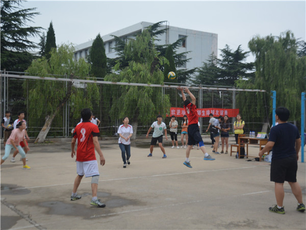 阴沉的天空并未阻挡住2015届毕业生以及老师们的热情。比赛一开始,双方就以势如破竹的气势打响了本次比赛的第一战。教工队防守得当、配合默契,垫球、传球技巧性十足,老将之风充斥全场。而毕业生队也不甘落后,不仅发球有力,而且扣球迅猛、拦网迅速,无一不展现出了属于青春的活力与风采。最后一局,随着降雨的到来,混杂着离别的伤感与对未来的憧憬,更是点燃了一种难以言喻的激情,将决胜之局打得酣畅淋漓、痛快之极!最终,毕业生代表队以2:1的比分获得本次比赛的胜利。