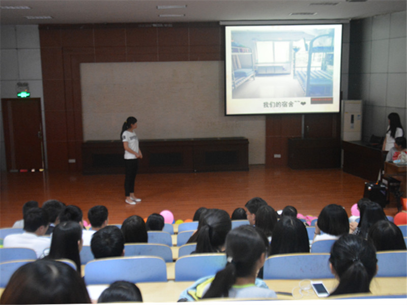 经过层层筛选,共有10个宿舍进行展示,分别来自法学,行管,秘书学和文秘四个专业。在活动中,各宿舍的PPT均是精益求精,别出心裁。用不一样的视角来展示自己的温馨宿舍。幽默诙谐的语言,优雅婉转的背景音乐,栩栩如生的照片,将观众们瞬间拉入其乐融融、相亲相爱的宿舍氛围。而充满新意的舍标设计,克己守则的舍规规定,都显示出了大家对于自己宿舍的守护与管理、对舍员的尊重与友爱。其中,有的宿舍将宿舍的荣誉着重标注具体讲解,有的宿舍将宿舍成员或调侃,或关心般介绍给大家,有的则将宿舍平日参加的小活动分享展示,在轻松愉快的氛围里,观众们能体会到紧密而又不能割舍的浓浓舍友情。舍长们真诚地说道,时光给予最好的礼物就是现在与舍友们的相知相伴,朝夕相处。而这一句话引起了同学们内心共鸣,引发掌声阵阵。