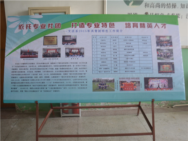 丰富多彩的社团活动不仅提高了学生综合素质和能力,也浓厚了校园文化氛围。文法系团总支扎实有效的工作得到了大家的一致好评,2015年5月,文法系团总支被评为校区、学院“特色工作红旗团总支”和“先进团总支”荣誉称号,这也是连续3年荣获特色工作先进称号。肩负使命,驶向未来,今后,文法系还将继续健全管理制度,开展高质量的的社团活动,依托专业社团,打造专业特色,培育精英人才,使社团的教育意义和实践功能得到发挥,促进大学生实现自我价值,提高综合能力,增长各种知识和见闻,促进校园文化繁荣多元,百家争鸣,百花齐放。(文:唐信玲 孙欣 图:孟令伟)
