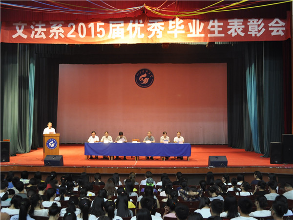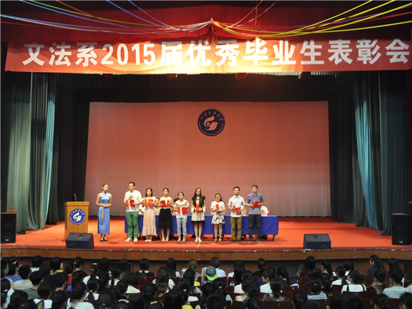 为了进一步加强学风建设,充分发挥先锋模范作用,使同学们深切感受榜样的力量,引导在校生树立切实可行的学习目标,6月12日下午,文法系在礼堂成功召开2015届优秀毕业生表彰大会。