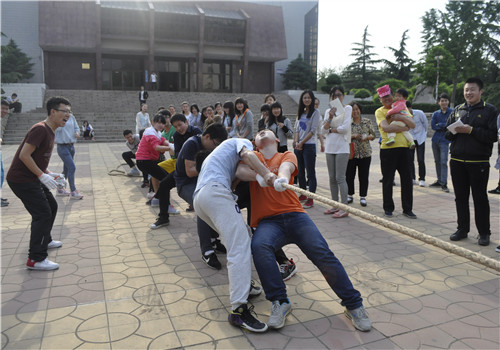 为鼓励同学们积极参加体育活动,加强自身身体素质。五月七日下午,由文法系团总支举办,文法系早检部和校园部联合承办的拔河比赛在礼堂前圆满落幕。文法系自律会指导老师郭艳培亲临现场,为选手们加油鼓劲。