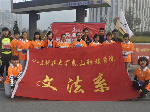 为增强身体素质,挑战自我极限,享受运动乐趣。文法系积极参加“泰山温泉城杯”2014年泰山国际马拉松比赛。文法系副主任王学宁,教师张传洲、张波、张艳霞、苏磊和蓝罡等15位学生参加了此次比赛。