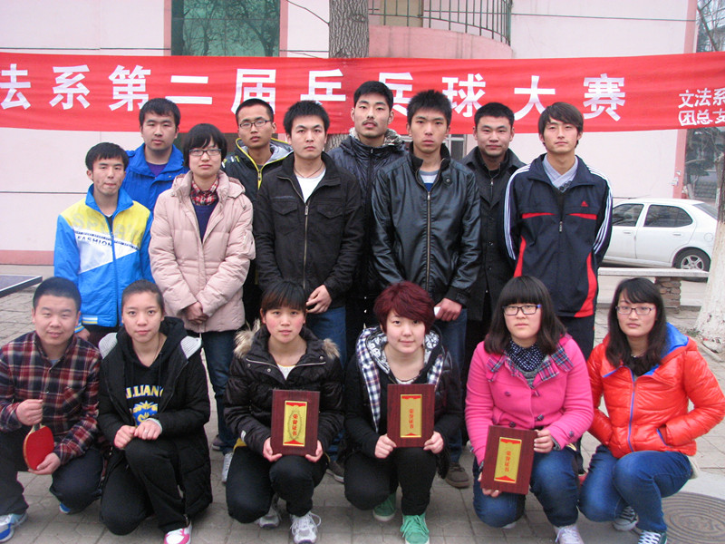 在春暖花开的季节,也正是同学们加强身体锻炼的好时候,19日下午,为期一周的文法系第二届乒乓球比赛经过初赛、半决赛后,决赛在学院乒乓球场如期举行。比赛前,各位选手都精心准备,志在必得,等待着决赛开始那激动人心的一刻。