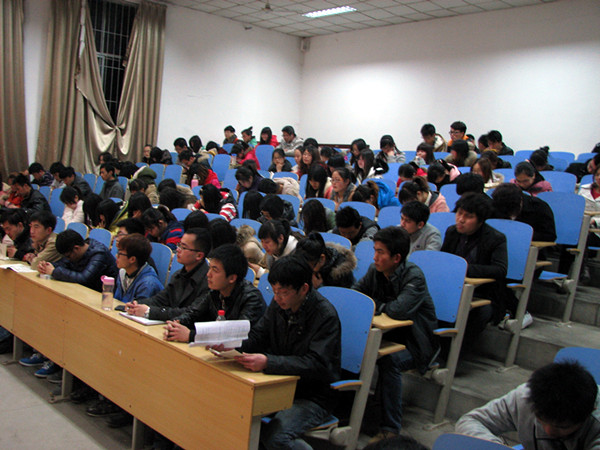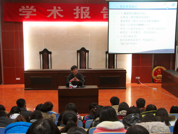 为了进一步浓厚英语学习氛围,使备考同学明确如何掌握学习技巧,提高同学们的复习效率,进而提高班级四六级通过率,3月28日晚,文法系学生会学习部在模拟法庭举办了英语四级考试经验交流会。