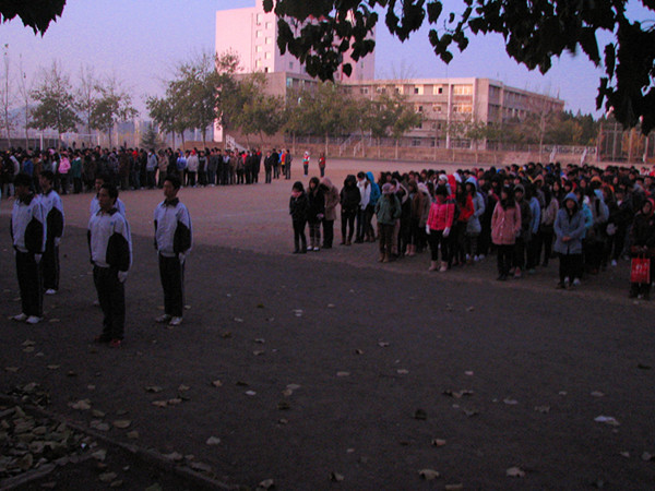 11月9日清晨6点30分,天刚蒙蒙亮,尽管天气还有些寒冷,但文法系参加升旗仪式的师生600余人已早早列队完毕,等待着升旗仪式的开始。