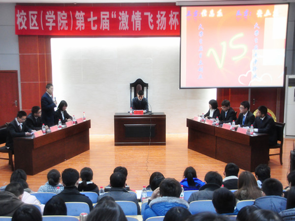 12月5日下午四点,文法系模拟法庭内外热闹非凡,各个系的同学们来到这里为参加第七届“激情飞扬杯”辩论赛复赛的选手加油助威。本次活动由校区(学院)团委、学生会主办,文法系团总支、学生会承办,共有来自各系的8支队伍参赛,经过第一阶段的初赛,共有东校园的资土一队、机电一队和西校经管二队、信息队等四支队伍成功晋级复赛。