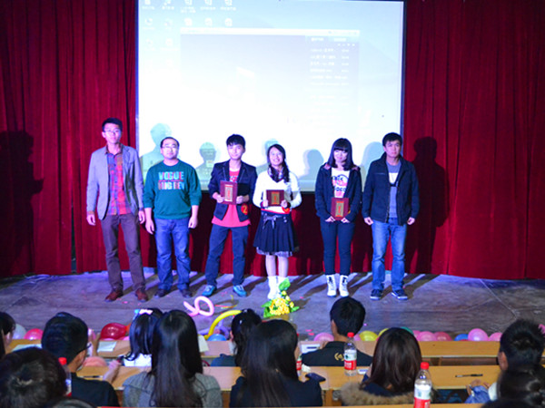 比赛在一场激情四射的开场舞中拉开了序幕,12位参赛选手上台依次做完自我介绍后比赛正式开始。本次比赛共分两个环节,第一环节:自选歌曲大比拼。选手们依次登台演唱,悠扬的旋律,嘹亮的歌声,不时迎来场下阵阵雷鸣般的掌声。尤其是4号选手高汉玉和8号选手王钦,他们堪称完美的演唱震慑了所有在场的观众,评委们也被深深地折服。在一场精彩的串场节目——武术表演过后,比赛进入第二环节,团体拼歌比赛,这一环节主要考验参赛者们的合作能力,选手们协调配合,表现自如,赢得了观众和评委的一致好评。最后,刘明远老师的一首《永远的兄弟》把比赛推向了高潮。最终,4号选手高汉玉和8号选手王钦当之无愧地夺得了一等奖。