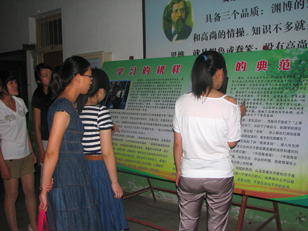 为了继续加强先进典型的宣传学习活动,5月3日下午,文法系将优秀毕业生张春丽与曹杰同学的优秀事迹用展板的形式进行宣传并组织教育学习活动。