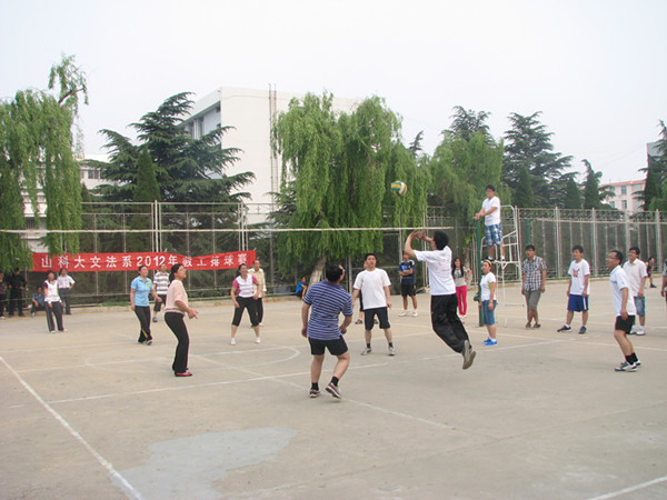 5月8日下午,文法系第一届教工排球赛在西校园排球场举行。比赛以工会小组为单位参赛,分别在两个场地进行。
