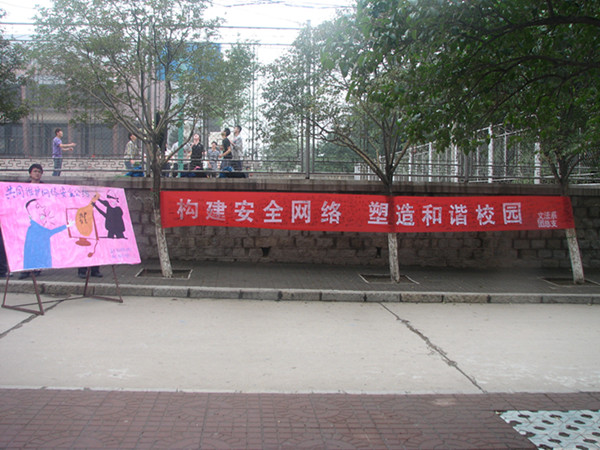 同学们陆陆续续地在宣传条幅上写下了自己的名字,表示对活动的支持。采访中记者发现,同学们对于网络安全这一话题纷纷有话要说,一位11级的同学说自己就曾因为腾讯账号被盗而苦不堪言:“账号被人盗取后,频繁发一些不良信息给我的亲朋好友们,大家反感极了,无奈之下我不得不换了另一个账号,现在上网时我特别小心陌生人发来的信息,很多资料都加密了”;另一位来自法学班的同学说现在的人肉搜索功能太强大了,有些无德网民专门以恶搞别人的照片资料为乐,“我在微博上传照片时往往还要考虑再三”;还有的同学愤慨到前些日子的“抢盐热”就是典型的散布谣言,“那些谣言传播者一定会受到应有的制裁”。