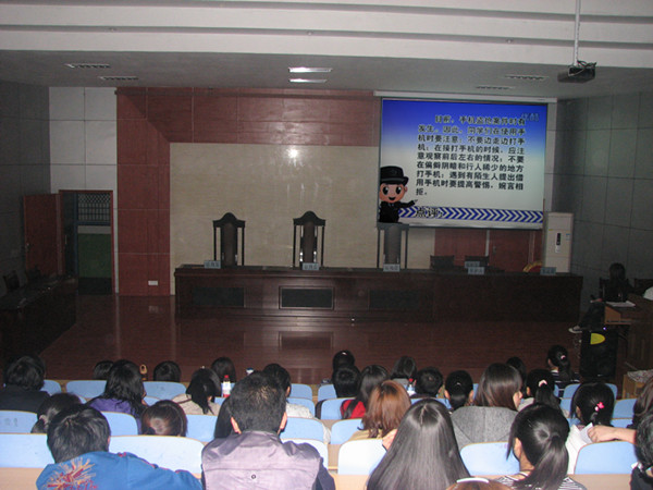 近年来食品安全、校园安全等各种安全问题越来越受到人们的重视,为了提高同学们的安全意识,由文法系自律会主办的校园安全视频展于4月13日晚在新模拟法庭成功举办。